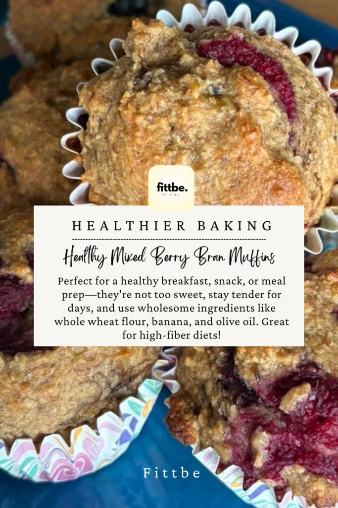 These Fittbe approved, moist mixed berry bran muffins are packed with fiber from wheat bran, naturally sweetened, and bursting with juicy blueberries, raspberries, and blackberries. Perfect for a healthy breakfast, snack, or meal prep—they’re not too sweet, stay tender for days, and use wholesome ingredients like whole wheat flour, banana, and olive oil. Great for high-fiber diets!